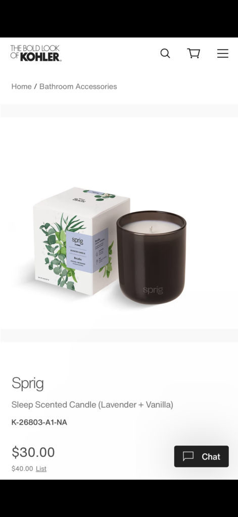 Kohler Sprig candle sleep