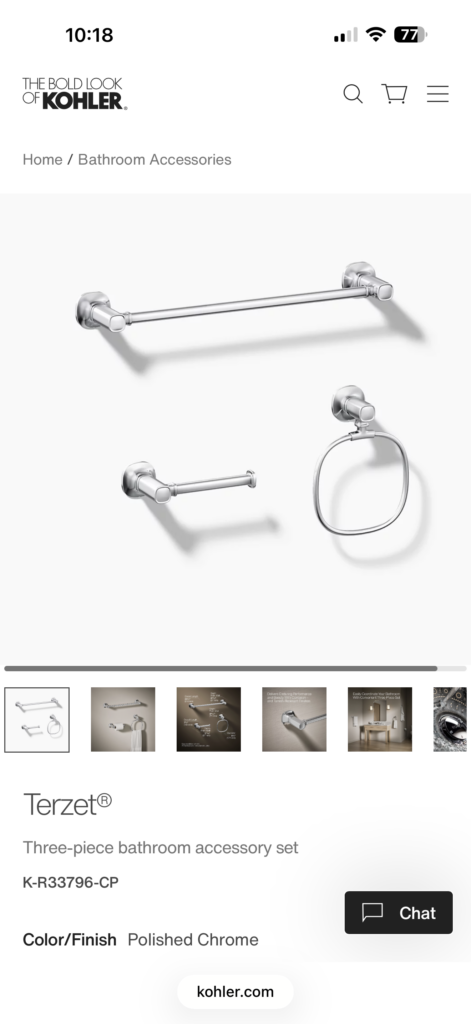 Kohler Terzet three piece bath accessory set
