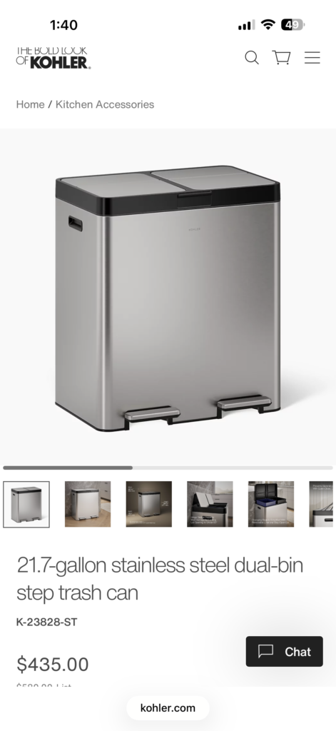 Kohler trash can Dual bin